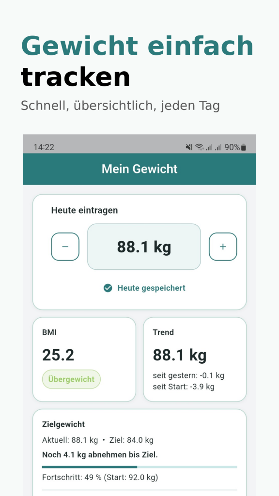 Behalte dein Gewicht im Blick – einfach, klar und ohne Ablenkung.